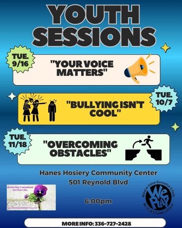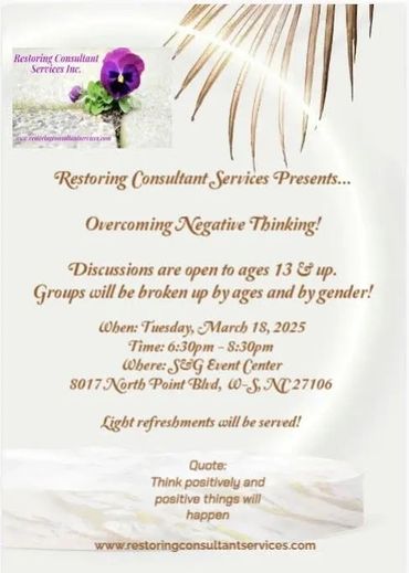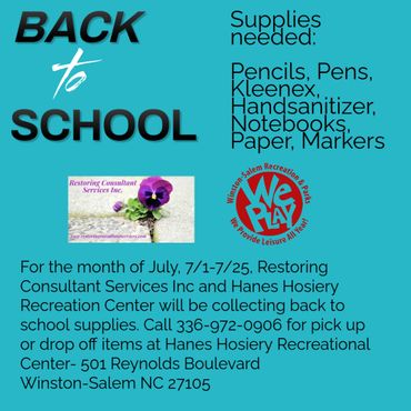 Restoring Consultant Services, Inc., is a nonprofit company founded in 2018 by Danielle Thomas. The company is focused on reaching individuals within the triad community to help support individuals needs. We offer a variety of services that focus on health wellness, professional development workshops, community outreach programs and seminars. Restoring Consultant Services aims to educate, inspire, and empower individuals to overcome obstacles and achieve personal growth.